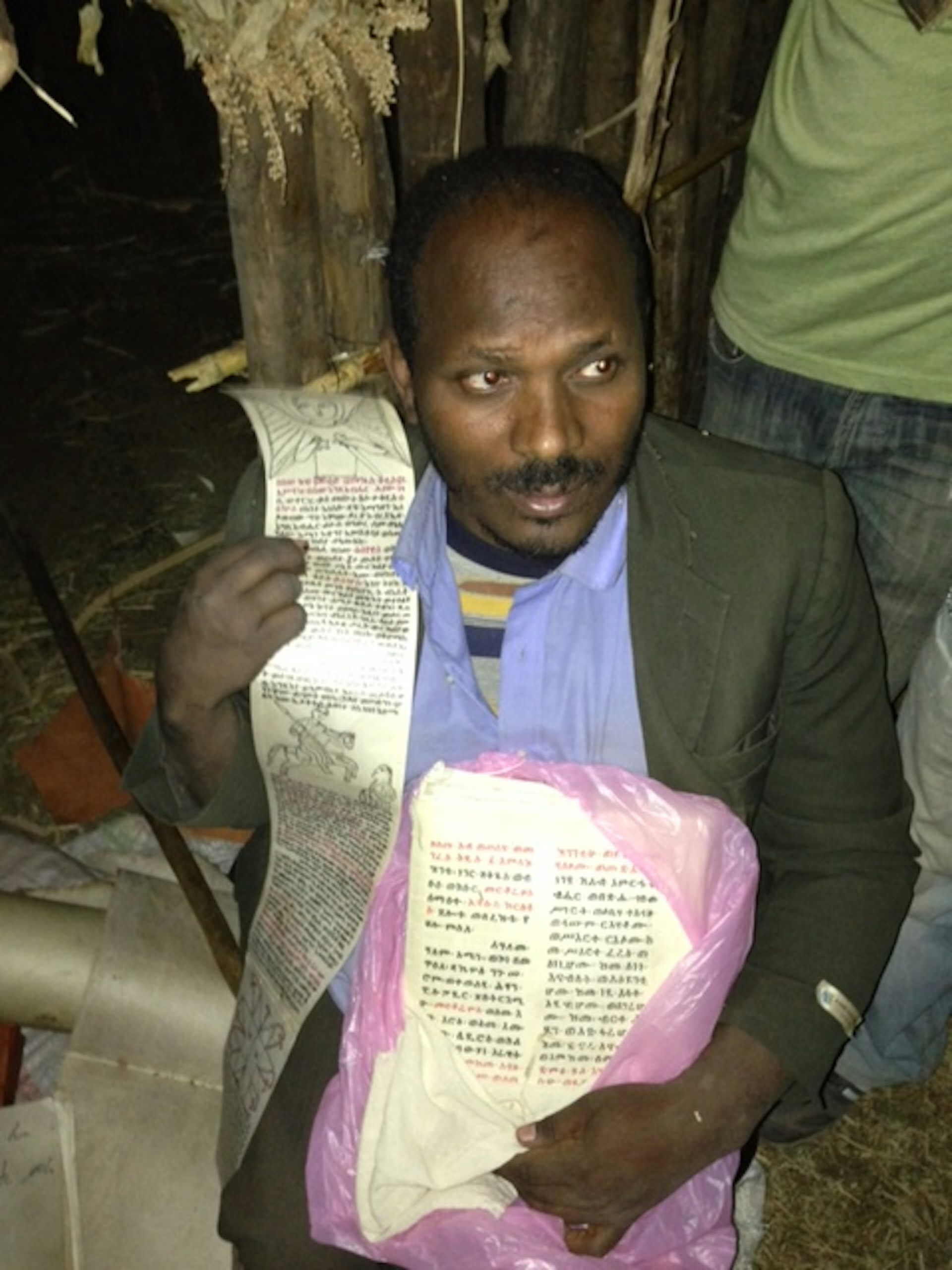 Le second type de producteurs d’images est plus difficile à classer : c’est un producteur de talismans, qui possède le savoir de guérir et d’envoûter. Il est appelé debtera et constitue une figure périphérique et énigmatique, dotée d’une éducation religieuse avancée mais utilisant son savoir sacré de manière individuellement indépendante pour produire des objets (les talismans) qui sont socialement problématiques et transgressent le dogme de l’EOTC.